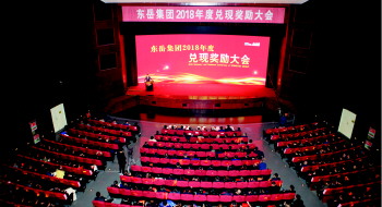 1月26日上午,东岳集团2018年度兑现奖励大会在桓台文化和体育中心举行。会上,集团不仅出重金奖励了发展功臣,同时也对2018年集团大事记进行了回顾梳理,对2019年发展目标进行了规划展望。东岳集团董事长张建宏表示,今年是东岳集团千亿级园区建设和百亿元项目投资计划落地年,面对全面深化改革的机遇期以及更加复杂动荡的经济形势,集团号召全体干部员工要勇于发扬“新时代东岳精神”,充分解放思想,坚持创新,坚守担当,勇于干事创业,为集团实现千亿元目标和高质量发展而拼搏奋斗。