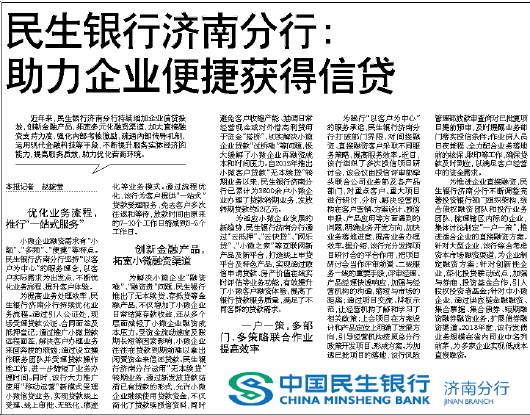 近年来,民生银行济南分行持续增加企业信贷投放,创新金融产品,拓宽多元化融资渠道,加大直接融资支持力度,强化内部考核激励,疏通内部传导机制,运用现代金融科技等手段,不断提升服务实体经济的能力,提高服务质效,助力优化营商环境。