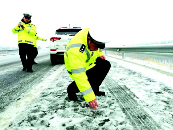 13日21时许,菏泽境内开始普降中雪,受降雪降温恶劣天气影响,高速公路辖区路面不同程度出现积雪结冰现象,影响了车辆安全通行。菏泽高速交警支队立即启动《恶劣天气应急预案》,各大队执勤民警迅速进入应急状态,全力以赴做好雨雪、冰冻恶劣天气的交通应急管理工作。