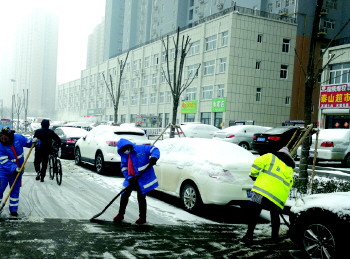 14日凌晨,天寒地冻,降雪仍在继续。菏泽市城市管理局环卫处工作人员驱车在市区内巡查,哪个路段有积雪马上上报。菏泽京环作业人员、环卫工人则及时上路扫雪,做到随降雪、随除雪。