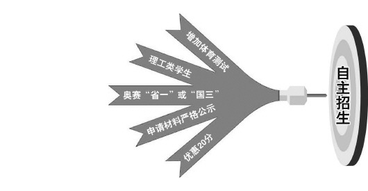 根据教育部要求,要在校考中增设体育科目测试,测试项目由高校根据中学教学实际自主确定,测试结果作为录取的重要参考。
