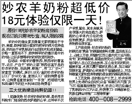 俗话说:中国羊奶看陕西,陕西羊奶看富平。近日,产自于“羊奶之都”陕西省富平县的妙农羊奶粉,创品牌,做推广,用“工厂价+厂家直营”的模式,原价118元/盒的妙农羊奶粉以工厂价18元/盒,直接从工厂送到消费者手中,让消费者直接拿到“一手货”,把层层代理和流通环节的巨大利润还给消费者!