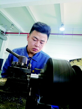 在日常的实操训练中,刘家昂总是牢牢把握住每一个实训机会。“2017年6月份,我被调到校实训中心做外协生产,这次训练使我的个人技能素养得到了质的提升。”提及自己的实操训练,刘家昂的话瞬间多了起来。在近三个月的实训过程中,从早上6点到夜间10点,他都严格按照生产的标准加工零部件。每当回到宿舍休息时,才真正感觉一天过去了,全身酸疼得厉害。“好的技术工人都是被件‘喂’出来的”刘家昂说,这句话成了支撑他的最大动力。