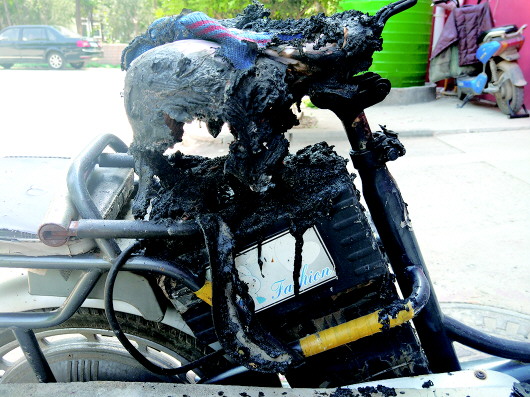 李先生的电动车被烧毁。 本报记者 戚云雷 摄