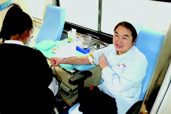李聪义务献血。