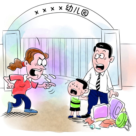 可老师不同意,就当着儿子的面,把他的小书包和被褥从他头顶上扔出去,噗通一声摔在地上,儿子想进去,他往左挤,老师往左边挡;他往右挤,老师往右边挡。孩子哇哇大哭,从此之后落下毛病,看见幼儿园三个字就害怕。