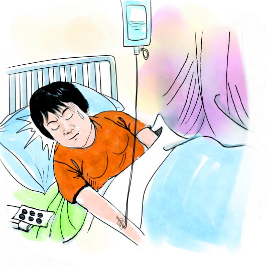 印象最深的一次,2014年,我正巧患胰腺炎,这种病非常疼,疼得在病床上打滚,不能吃不能喝,需要24小时打针。那天,老公接到幼儿园电话,说儿子从窗台上往下跳,让老公过去。老公赶过去,老师拿出视频来,逼着孩子退学。老公哀求老师:“孩子他妈住院了,医院里连个看护的人都没有,能不能等我们十天,等孩子妈妈出院了,我们接着找幼儿园,绝不耽误。”