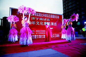 本次活动由济宁高新区文体旅游广电局主办、济宁浩美体育文化服务中心承办。活动围绕宣传贯彻习近平新时代中国特色社会主义思想,宣传解读党的方针政策,培育践行主流价值观,传承涵育优秀传统文化,倡导弘扬时代新风为主题。表演的歌舞、相声、小品、戏曲、魔术等文艺节目内容丰富、形式多样,融思想性、艺术性、教育性于一体,贴近百姓生活。上千名观众在享受艺术盛宴的同时,接受了党建知识、社科普及和传统文化等方面的教育。