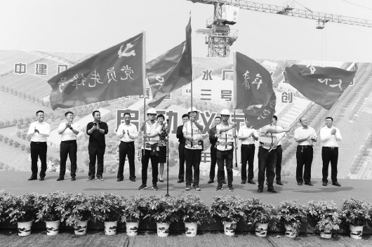 与会领导为项目建设者授旗。本报记者 王瑞超 摄
