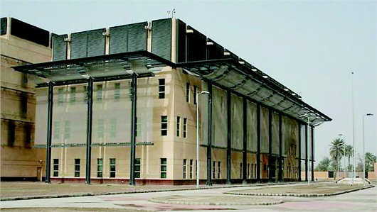 ◥位于巴格达的美国驻伊拉克大使馆是美国规模最大的海外使馆。