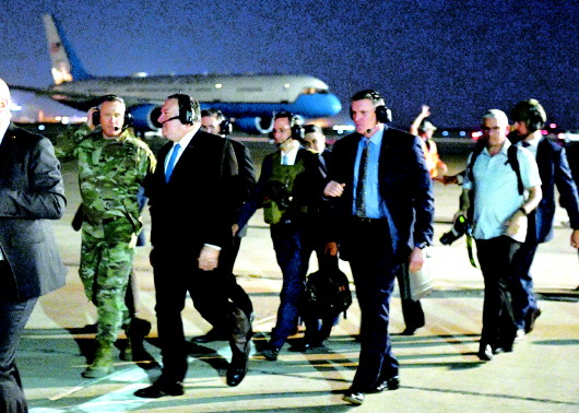 5月7日,美国国务卿蓬佩奥(左二)突访伊拉克。 新华社发