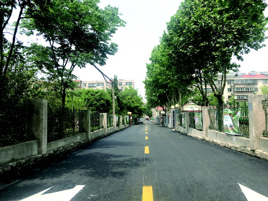 ◥铁路玉函小区内绿树成荫,一些树木被伐并没有影响绿化。