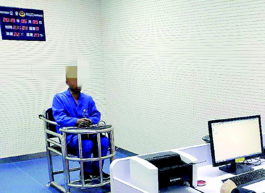 犯罪嫌疑人在接受审讯。
