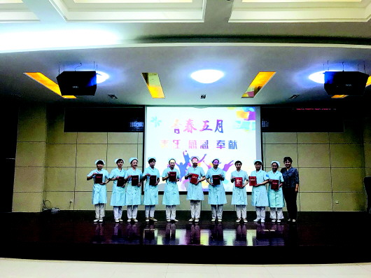 本报5月16日讯(记者 石剑芳 通讯员 方超) 为庆祝第108个“5·12”国际护士节,进一步弘扬和传承南丁格尔精神,表彰在护理工作中表现优秀的先进集体和个人,5月12日下午,济南市明水眼科医院举行“纪念5·12国际护士节”暨护士表彰大会,该院全体护理人员用精彩纷呈的节目汇演迎接节日的到来。