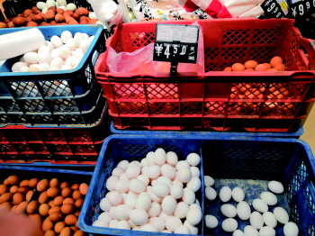 据一商场负责人介绍,今年鸡蛋价格最便宜的时候是在2月底至3月初,期间有涨有跌,但并不大,但从3月中下旬开始,鸡蛋价格几乎一天一涨,由最便宜时的一斤2元左右,涨至现在的一斤4.5元。