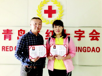 签下遗体捐献申请表后,二人拿到了编号为201900289、201900290并盖有青岛市红十字会印章的山东省遗体捐献荣誉证书,他们也成为了2019年青岛市第289名、第290名申请登记的市民。据青岛市红十字会数据,截至今年5月15日,全市已登记捐献志愿者4000余人,捐献遗体856例,捐献角膜1166例,2000余名角膜致盲者重见光明,捐献器官718例,救治器官衰竭者2000余名。