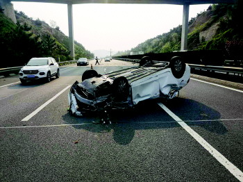 本报5月16日讯(记者 潘旭业 通讯员 许芳宁) 一男子在高速上开车时收到微信消息,低头查看时追尾前方货车,轿车四轮朝天翻倒在路面上,毁坏严重,所幸未造成人员伤亡。