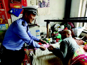 5月18日,胶州交警八中队数名蓝盾志愿服务队队员在中队长刘洪常带领下与三里河红丝带义工队的队员一同走访了3户贫困家庭,为他们送上米、面、油等日用品,还捐助善款1000元。交警八中队将与这三户困难家庭结成对子长期帮扶。
