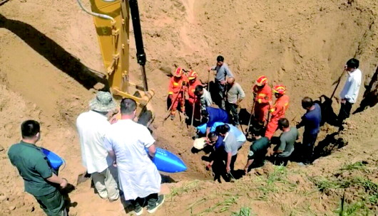 人命关天!当地政府立即协调大型挖掘设备赶赴现场,做好一切救援保障工作。消防大队、派出所民警、120医务人员、警务助理和代庄村村民一齐赶往现场施救。