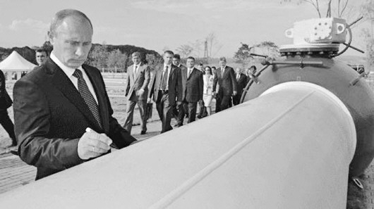 2018年,俄总统普京在“北溪-2”管线上签名留念。
