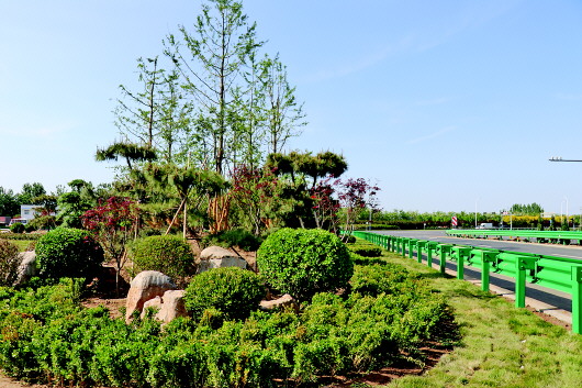 贾庄镇则根据镇域沿线的特点,对道路两侧50米进行了统一绿化,绿化苗木以高低错落、层次鲜明的阵列形式栽植,主要绿化品种有海棠、白蜡、法桐等,共计20000余株,充分体现绿化长廊的厚重、亮丽和错落有致。县住建局发挥专业职能,在绿化节点按照“生态商河、璀璨明珠”的设计理念,精心打造绿化节点,利用乔木组团、花灌木片植、地被围合、草坪衬托的搭配方式,充分体现了商河县自然、生态、绿色的发展理念。