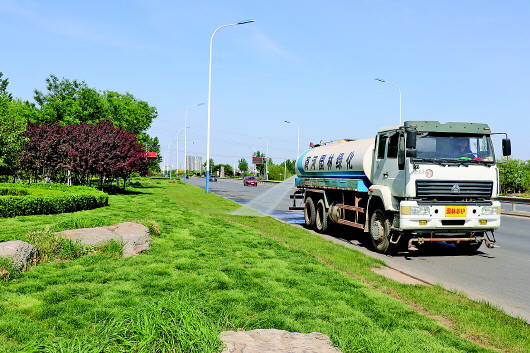 在绿化养护上,根据城区绿化面积、位置,将养护范围分为八个标段公开招标、优选队伍。目前,各养护单位正在进行日常养护工作,重点是缺株断垄补植、苗木修剪、喷水降土、清理绿地及园区水体垃圾,并利用雾炮车对城区园林植物喷洒石硫合剂两遍,降低全年病虫害发生几率。通过高压水枪进行杨柳飘絮的治理,减少扬尘污染。