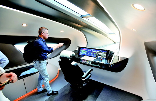 参观人员在高速磁浮试验样车上参观。(小图) 新华社发