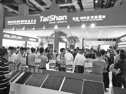 体博会上泰山体育展区吸引了众多的参观者。