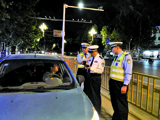 为预防和减少夏季道路交通事故,按照省厅交管局统一部署,日前,长清交警大队政委崔科军带领城区、张夏、归德、五峰、万德、大学路、机动中队执勤民警,在重点路段设点严查各类交通违法行为。其间查获酒后驾驶1例,大货车闯禁区3例、超载3例、改型2例,涉牌涉证12例,面包车超员3例,违停26例,其他违法行为13例,进一步改善了辖区交通通行环境。 齐鲁晚报·齐鲁壹点通讯员 郭嵩 摄