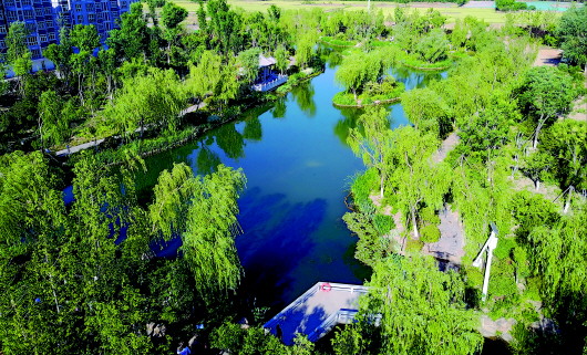 5月,猝然而至的酷暑高温让采访团有些招架不住,但一走进廉颇湿地公园,满眼的绿意、拂面的微风竟让人仿佛瞬间消暑。该湿地公园充分保留了塘子的原地形地貌、古树、甜水井、明代古道等历史原貌,科学融入到设计建设中,恢复乡土记忆,留住乡愁,充分满足了周边居民的亲水、亲绿、健身的需求,给市民提供了一处寻梦、听诗、怀古的游园空间。