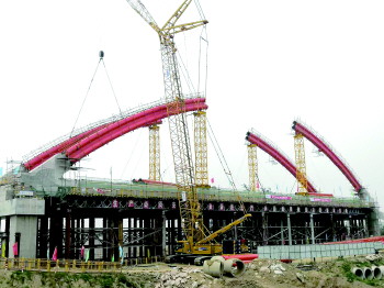 “跨新万福河大桥采用系杆拱设计工艺,具有拱桥的一般特征,又有自身独有特点。”何毅说,,大桥主跨103米,建成后不仅漂亮美观,而且保证了万福河通航后河面上船只的通行。