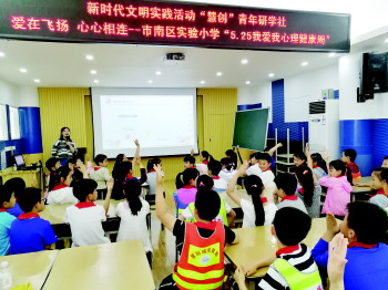 心理健康的首要标准是认识自我,接纳自我,体验自己存在的价值。在“我爱我”心理健康日到来之际,市南区实验小学开展心理健康周活动。学校通过组织学生分享心理健康研究性学习报告、听讲座、诉说心里话、家长沙龙等形式,引导学生关爱自我、关爱他人。
