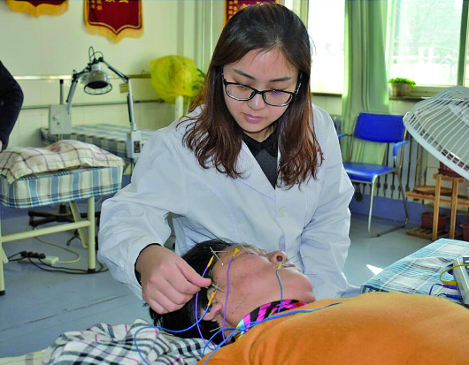 针灸理疗治疗面瘫。