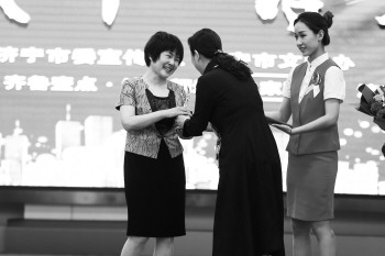 济宁市第一人民医院产科主任韩英杰上台领奖。 本报见习记者 梁响 摄