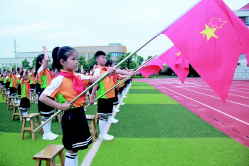 上午9点,活动在庄严的国歌声中拉开帷幕。活动中,宣读了《批准中国少年先锋队济宁海达行知学校大队成立的决定》,进行了授大队旗仪式,英姿飒爽的小旗手出队旗,全体少先队员同唱《中国少年先锋队队歌》。随后,老队员为853名新队员佩戴鲜艳的红领巾,与会领导共同为少先队员代表颁发少先队员证,活动在少先队员的齐声呼号中推向高潮。