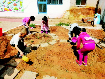 开心种植园活动 为让幼儿观察了解种植的每一个步骤,感知植物的生长过程,近日,沂源县鲁村镇中心幼儿园开展了“开心种植园”实践活动。(齐爱山)