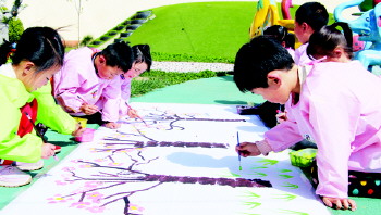 与经典同行 为让幼儿在古诗中感受中华传统文化,近日,沂源县悦庄镇中心幼儿园开展了“走进自然,与经典同行”活动。(刘汉凤 赵圣菊 王晴晴)