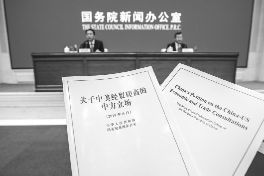 国务院新闻办公室6月2日发表《关于中美经贸磋商的中方立场》白皮书。白皮书系统梳理和介绍中美经贸摩擦的来龙去脉和两国经贸磋商的基本情况,阐明了中国政府关于中美经贸磋商的原则立场。
