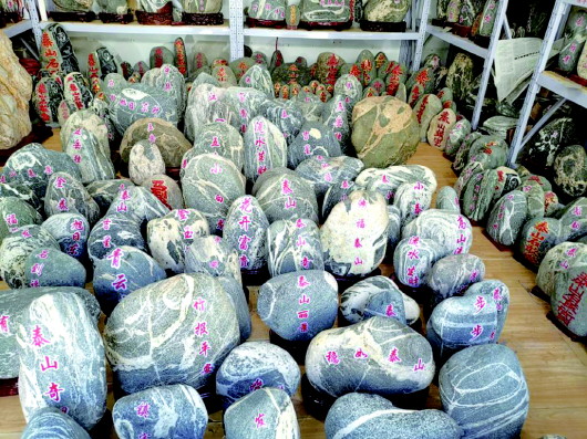 因为没有生意,奇石店老板分外热情,也乐于向来访者追述泰山石的黄金时期。在他们口中,2008年是公认的泰山石买卖最红火的一年,“基本没有停过,每周都有大车的石头卖出去。”