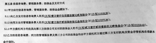 他找出一年前宜信普惠的贷款合同重新查看,才惊讶地发现在宜信普惠的借款协议中,实际借款10万元,协议却写着借款本金为150920元。同时合同第五条显示,借款人还应付信息咨询费11518元,管理服务费17277元,担保金21219元。“乙方信息咨询费、丙方管理服务费及第三方公司的担保金均由甲方通过第三方支付机构及资金存管机构在借款本金中划扣。”