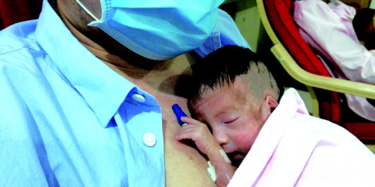 “她好小啊!”看着趴在自己胸口的女儿,一丝笑容浮上王新刚的脸庞,第一次抱宝宝在怀里,他颇为紧张,有些不知所措。其实,38岁的王新刚已经不是第一次做爸爸了,他还有一个9岁的儿子,但是看到早产的宝宝还那么小,他感叹自己有些束手无策。