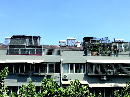▲凤凰山庄一顶层居民家左右邻都在楼顶建了鸽舍。 齐鲁晚报·齐鲁壹点记者 王杰 摄