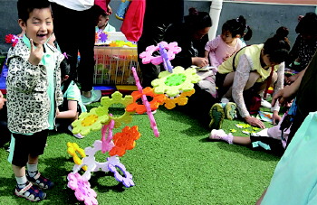 庆六一亲子活动 为让孩子们过一个轻松、快乐、自由的儿童节,沂源县鲁山路幼儿园组织开展了庆六一系列活动——亲子游园活动。 (张宗叶)