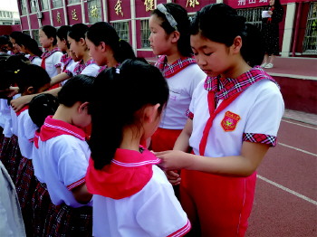 新队员入队 近日,沂源县荆山路小学少先队举行了“戴上红领巾,争做好少年”入队仪式。一年级160名新队员全部加入中国少年先锋队。(孙静 王新刚)