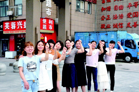 十位母亲为孩子录制视频加油。 见习记者 王凯 摄