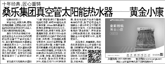 桑乐集团真空管太阳能热水器——黄金小康