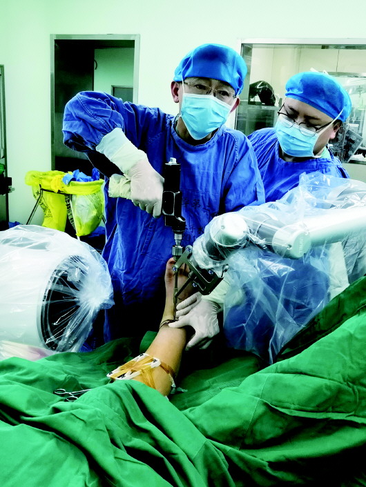 据了解,传统的胫骨骨折螺钉内固定术需要手术切开进行复位,而且螺钉难以与骨折线垂直,导致生物力学强度不足,负重后容易发生移位;且螺钉置入不满意,反复置钉,容易损伤骨骺,影响骨骼生长发育。而机器人就像具有“透视眼”一样,想往哪里打螺钉,就能将螺钉打到哪里,既减少了对组织的创伤,又能达到满意的内固定效果。