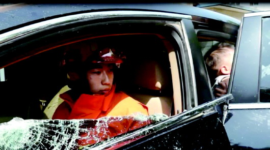 于是,在中队指挥员安排下,在将破拆车窗周围玻璃清除后,一名身材瘦小的消防员钻窗入车,采取找寻车钥匙打开车门的方式。