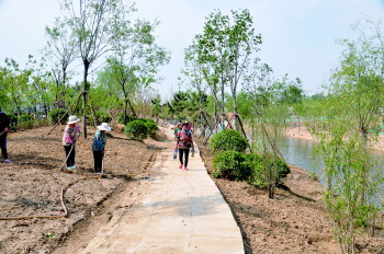今后,浅水区还将种植芦苇、菖蒲等根系发达,茎叶茂盛,有净化功能的水生植物。这样一来,既可以增加河道景观性,也可以发挥雨水湿地的调蓄作用。既美化了景观,又改善环境质量,对污水处理厂排入的水进行生物净化。
