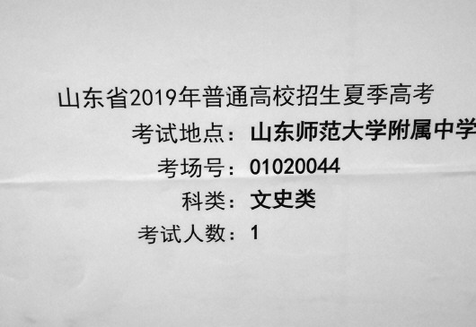 山师附中今年设置的44个考场中,有一个非常特殊,只有一名考生。记者了解到,这名考生由于身体情况特殊(患有脑瘫),无法使用常规考试用桌椅。经过招生主管部门批准,这名考生自带特殊桌椅,提前完成安置。尽管只有一名考生,考点同样配备了完整的监考人员。祝愿他考试顺利。